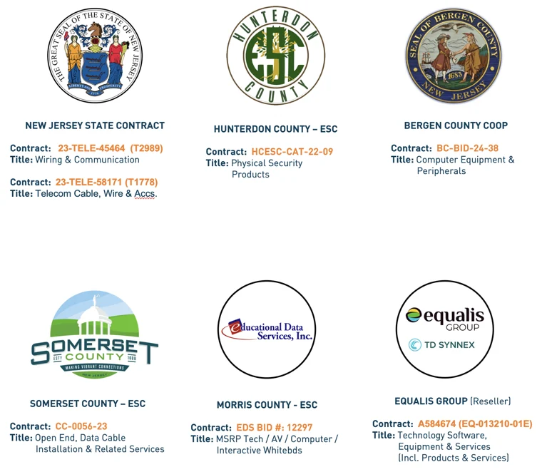 CTCI’s involvement in State, Government, and County Purchasing Cooperatives ensures that our clients have access to a broad range of goods and services. From Physical Security and Audio-Visual Solutions to Structured Cabling and WAN/Campus Networks, we can help you source the products you need to keep your organization running smoothly.
